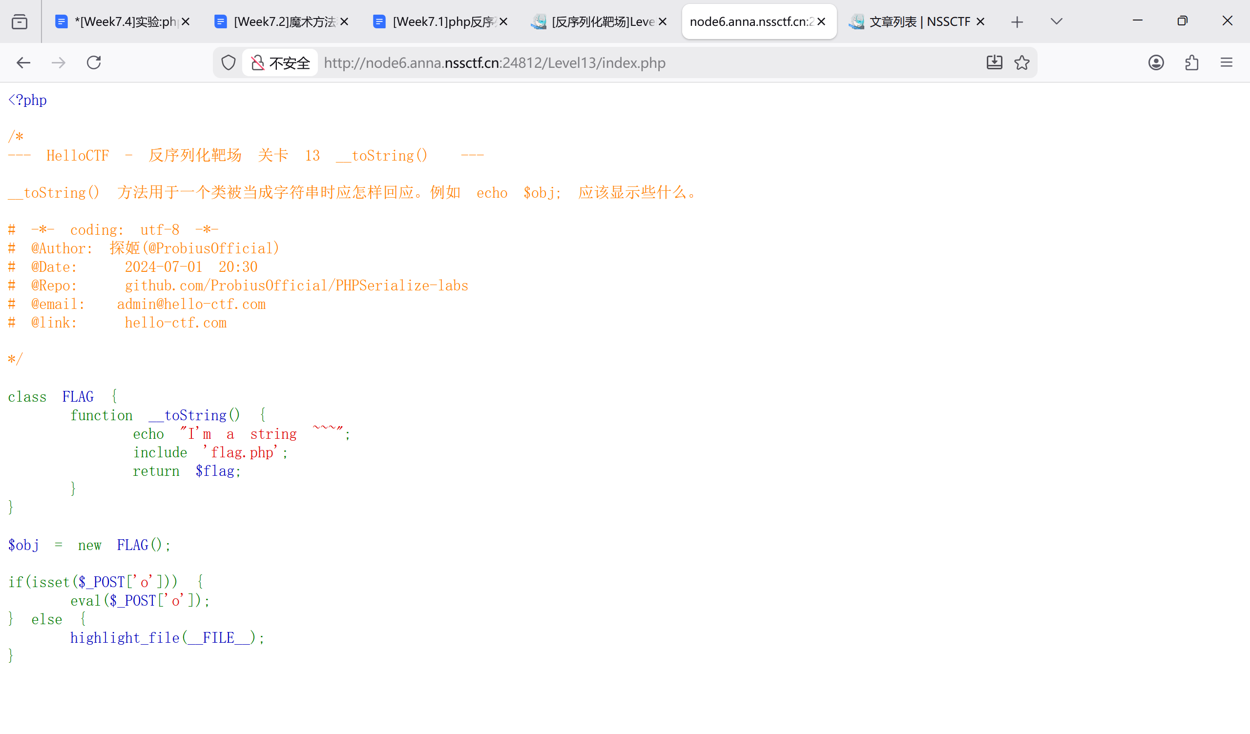 反序列化很重要,我们再加练几道题熟悉一下魔术方法和 POP 链…