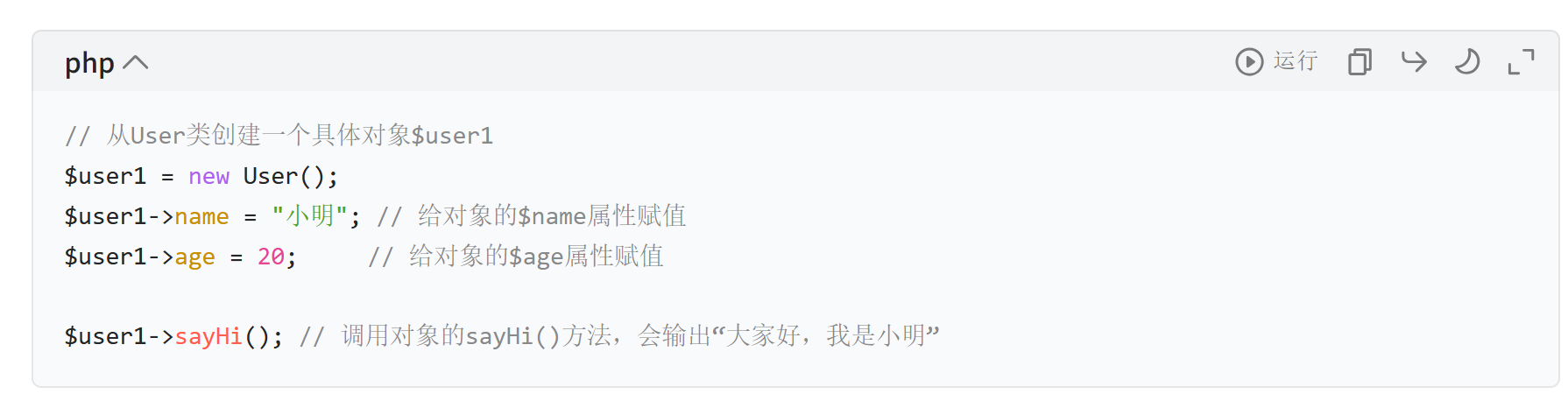 ->访问属性 / 方法(比如$obj->属性名、$obj->方法名())。