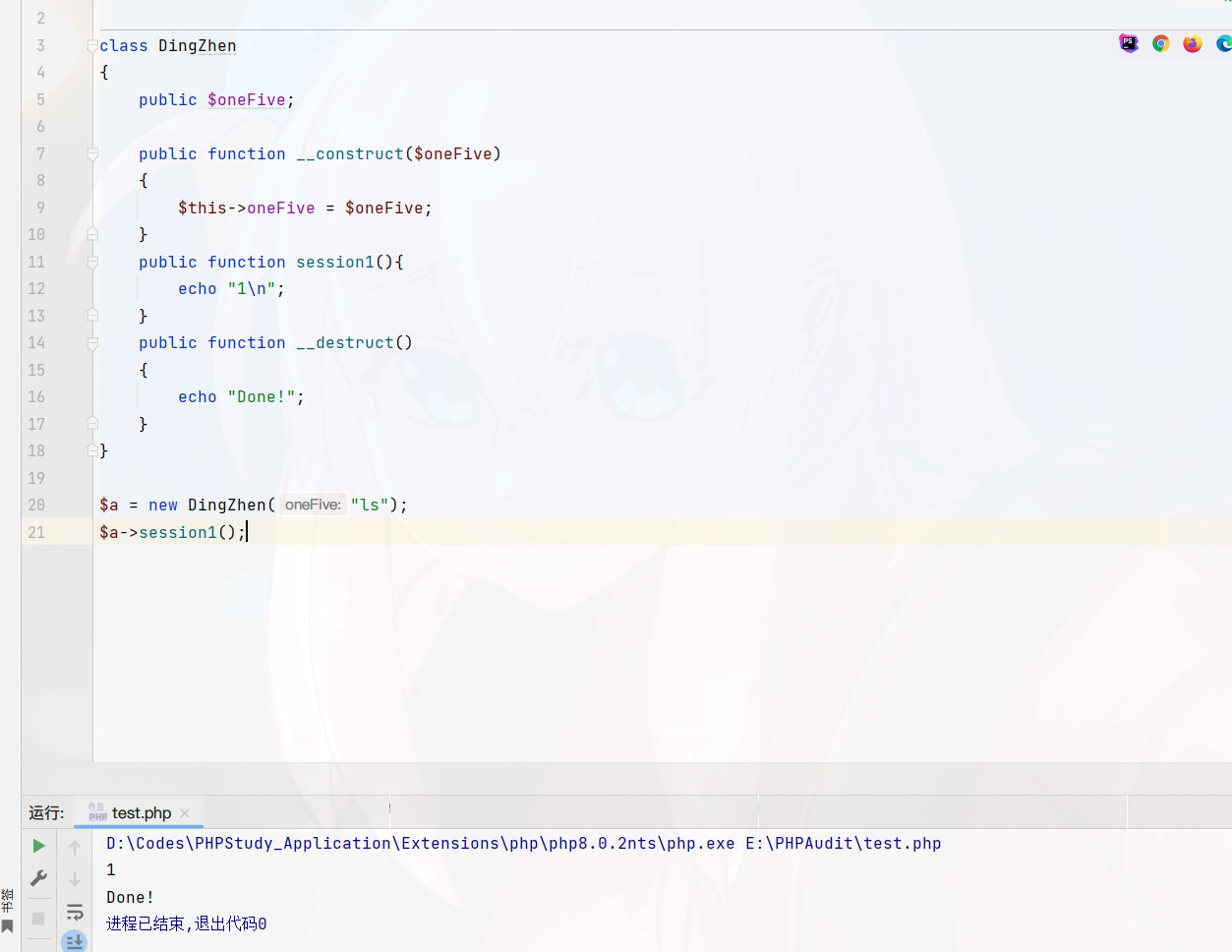但在这里要注意的是,新创建的对象是匿名对象(会立即被销毁,触发析构函数,但也会触发构造函数 construct),而非名为 code,code 只作为命令被执行.