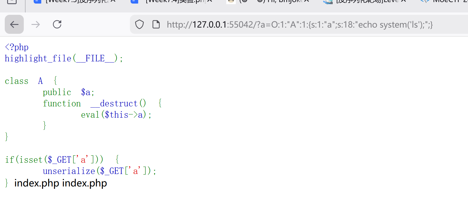 $cmd="ls"(或其他命令)的序列化字符串,传给data参数,反序列化后触发__destruct(),就能执行ls命令 —— 这就是最基础的反序列化漏洞利用。