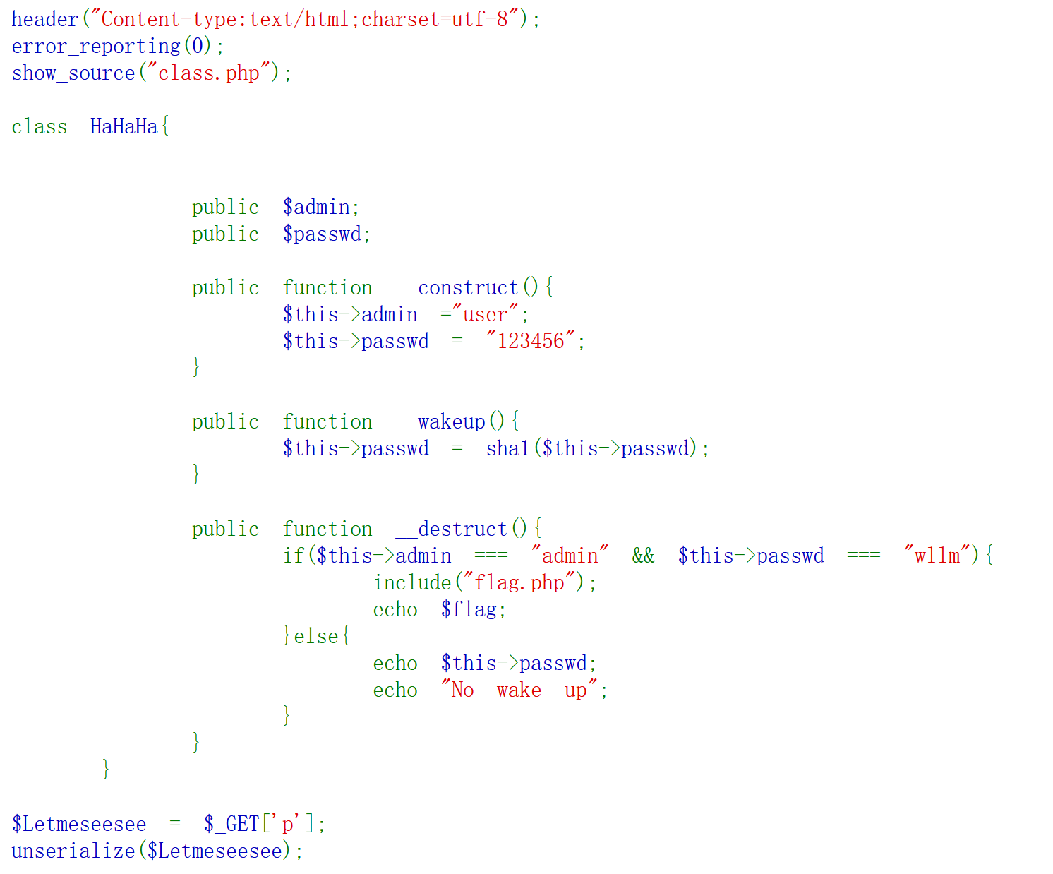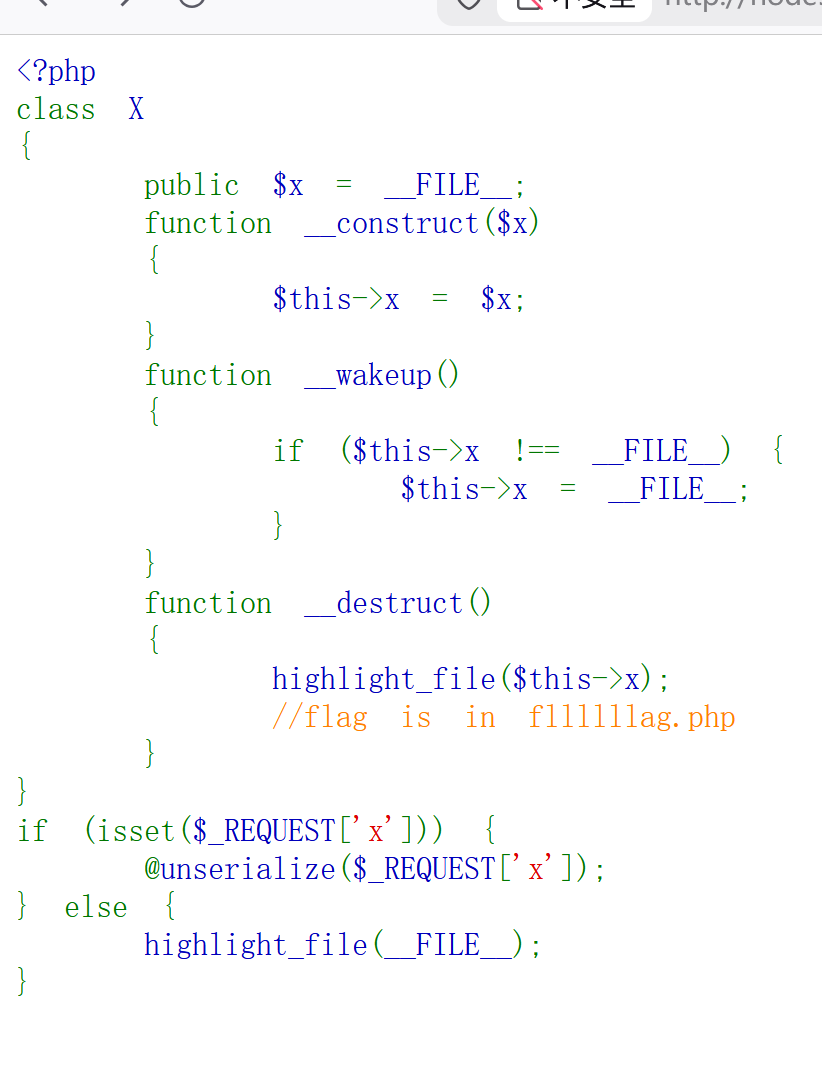 所以本题我们既需要为 x 赋给好了的 php 文件,又要绕过 wakeup 函数把他赋值回无用的__FILE__