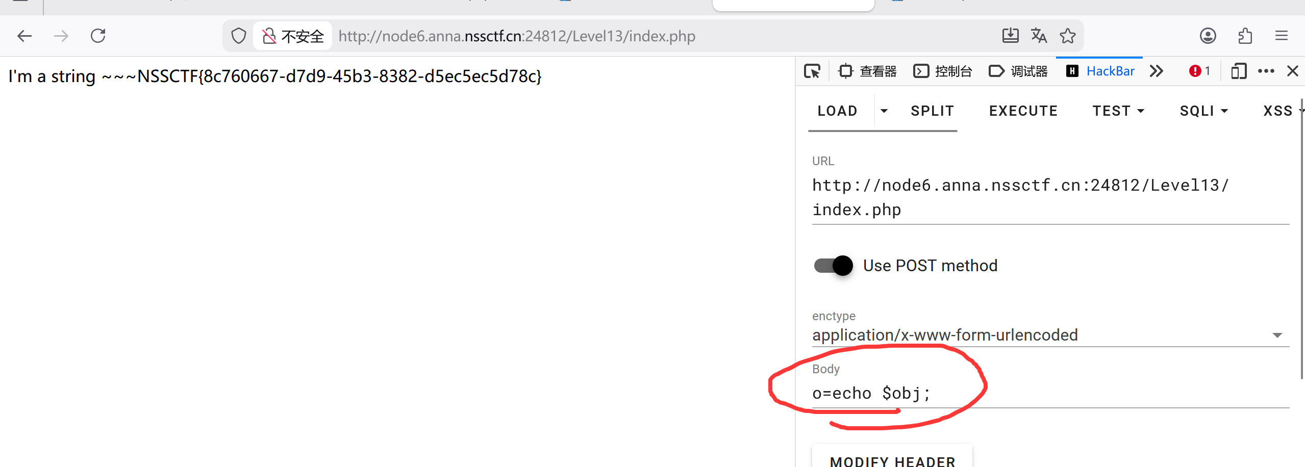 读题,易知 echo $obj,将其视为字符串打印即得 flag