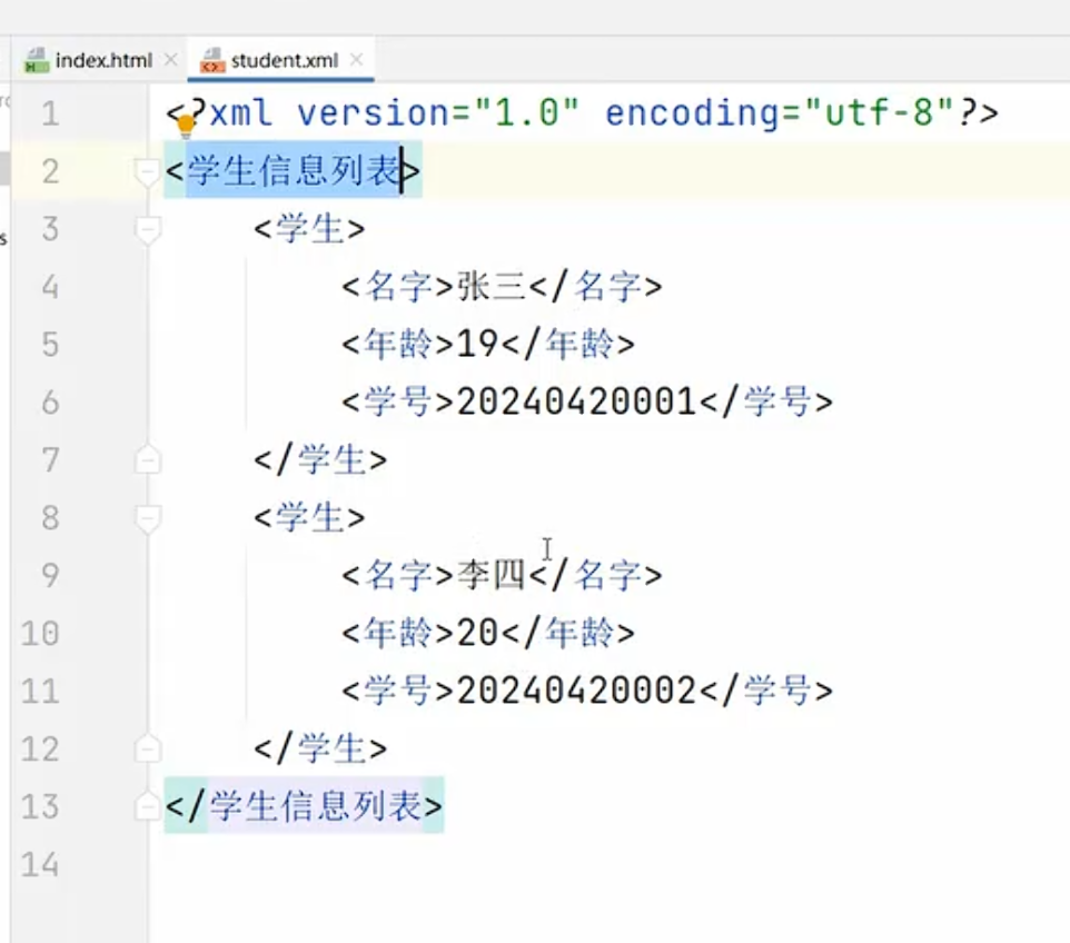 1.xml 标签一定是需要闭合的双标签,且 xml 必须进行正确嵌套.
