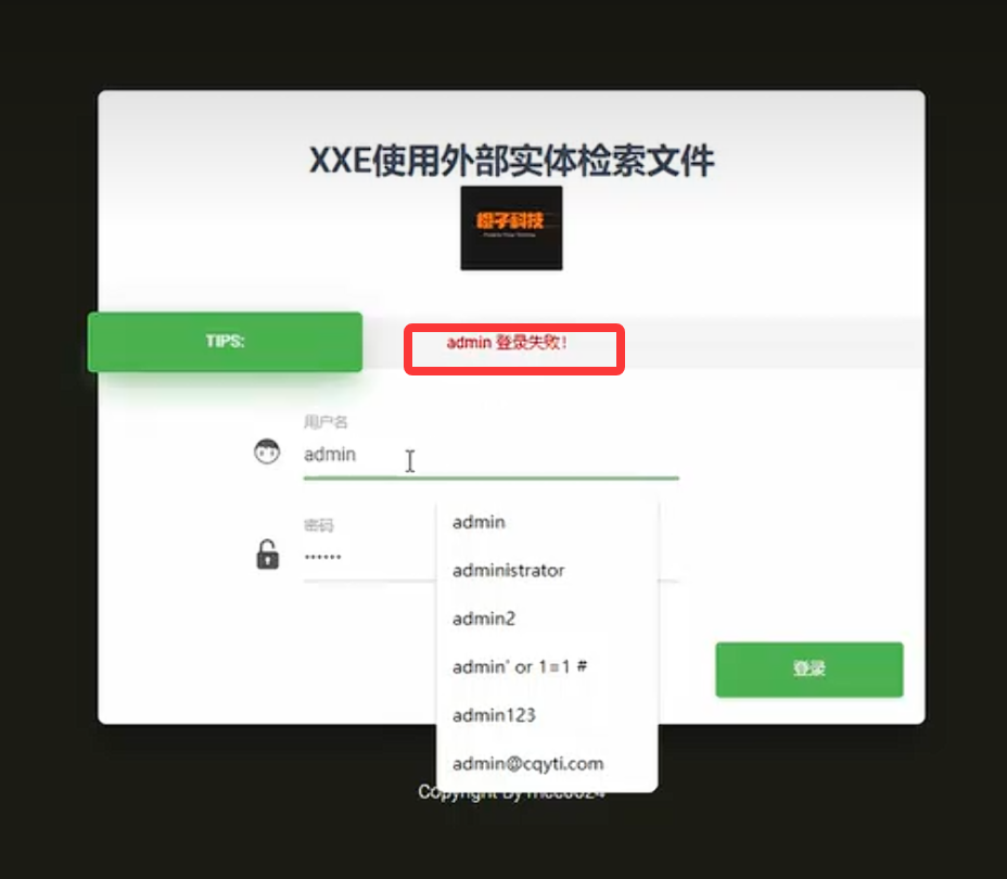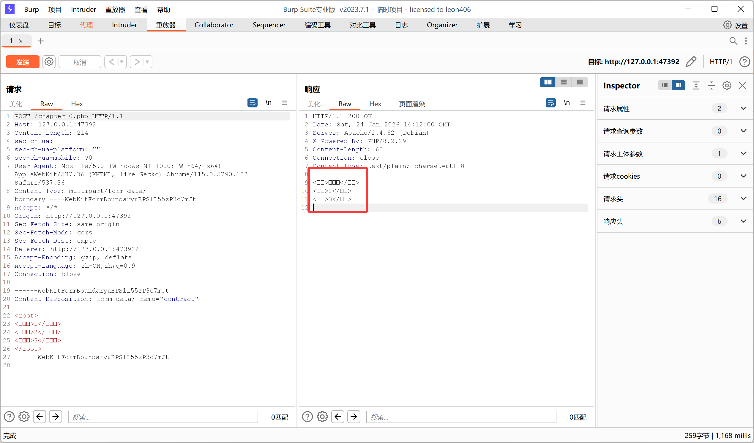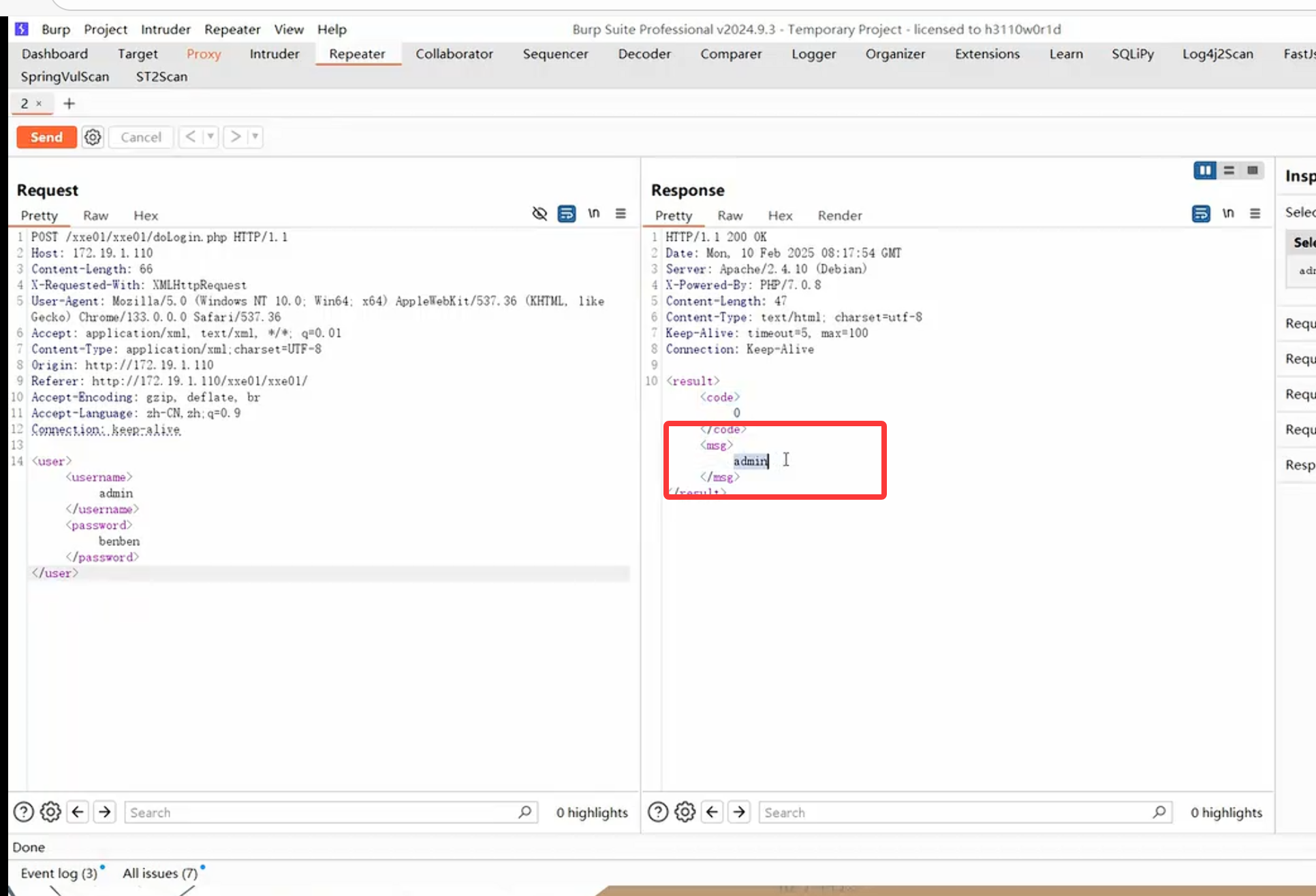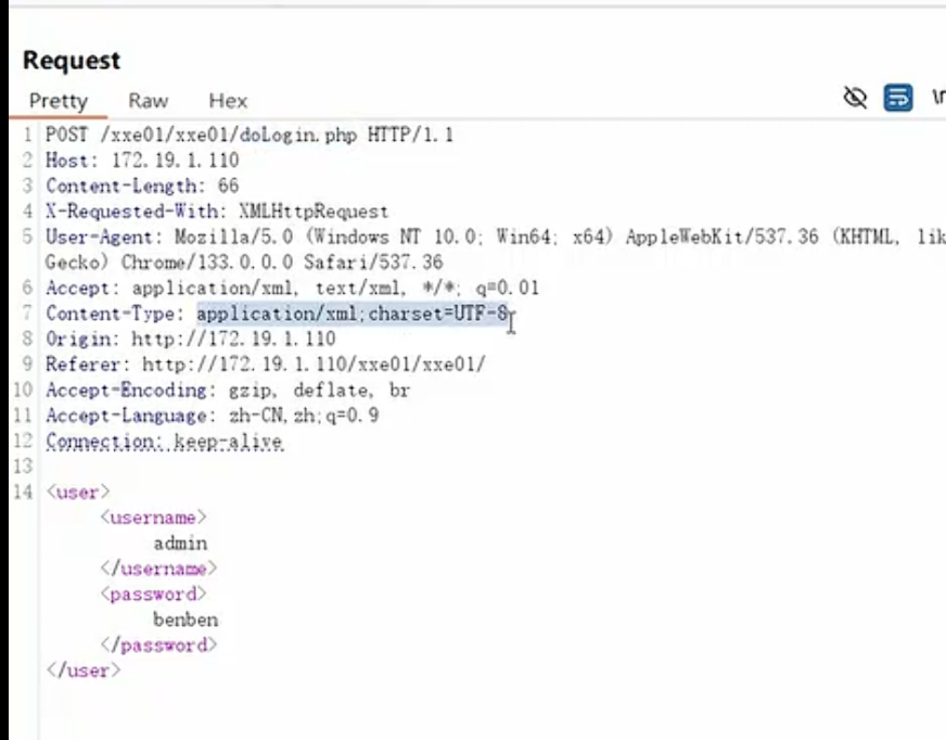 随便输入用户名和密码,点击登录并使用 Burp 抓包,观察到 xml 格式