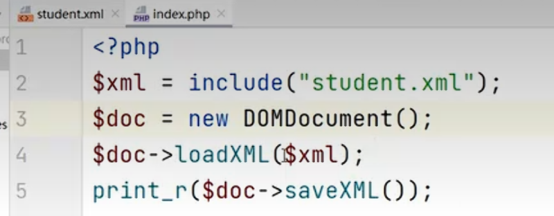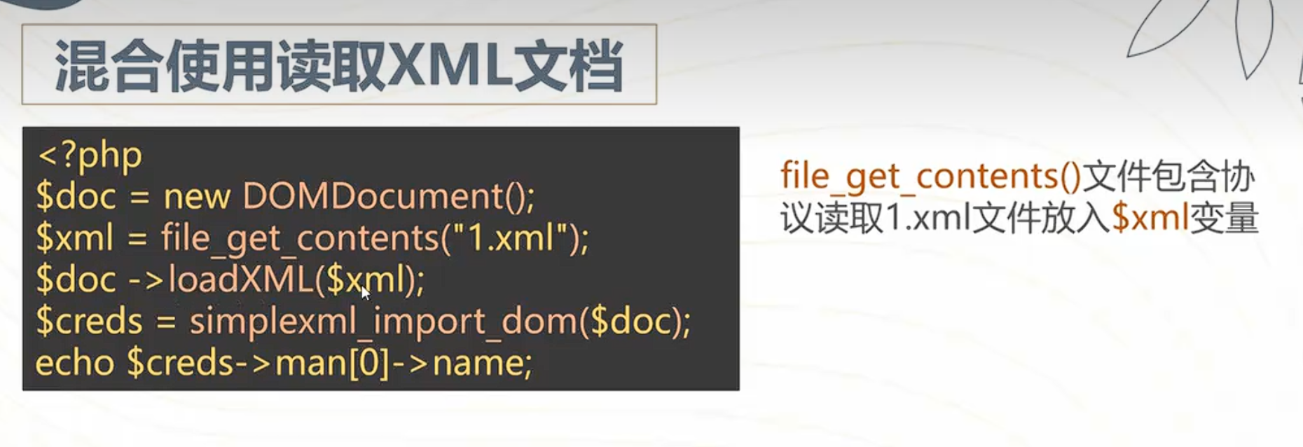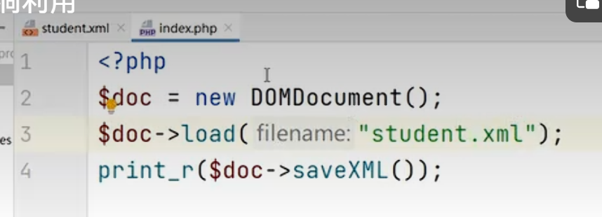 simplexml_load_file()函数把 XML 文档载入对象中;print_r 打印显示变量 $xml。