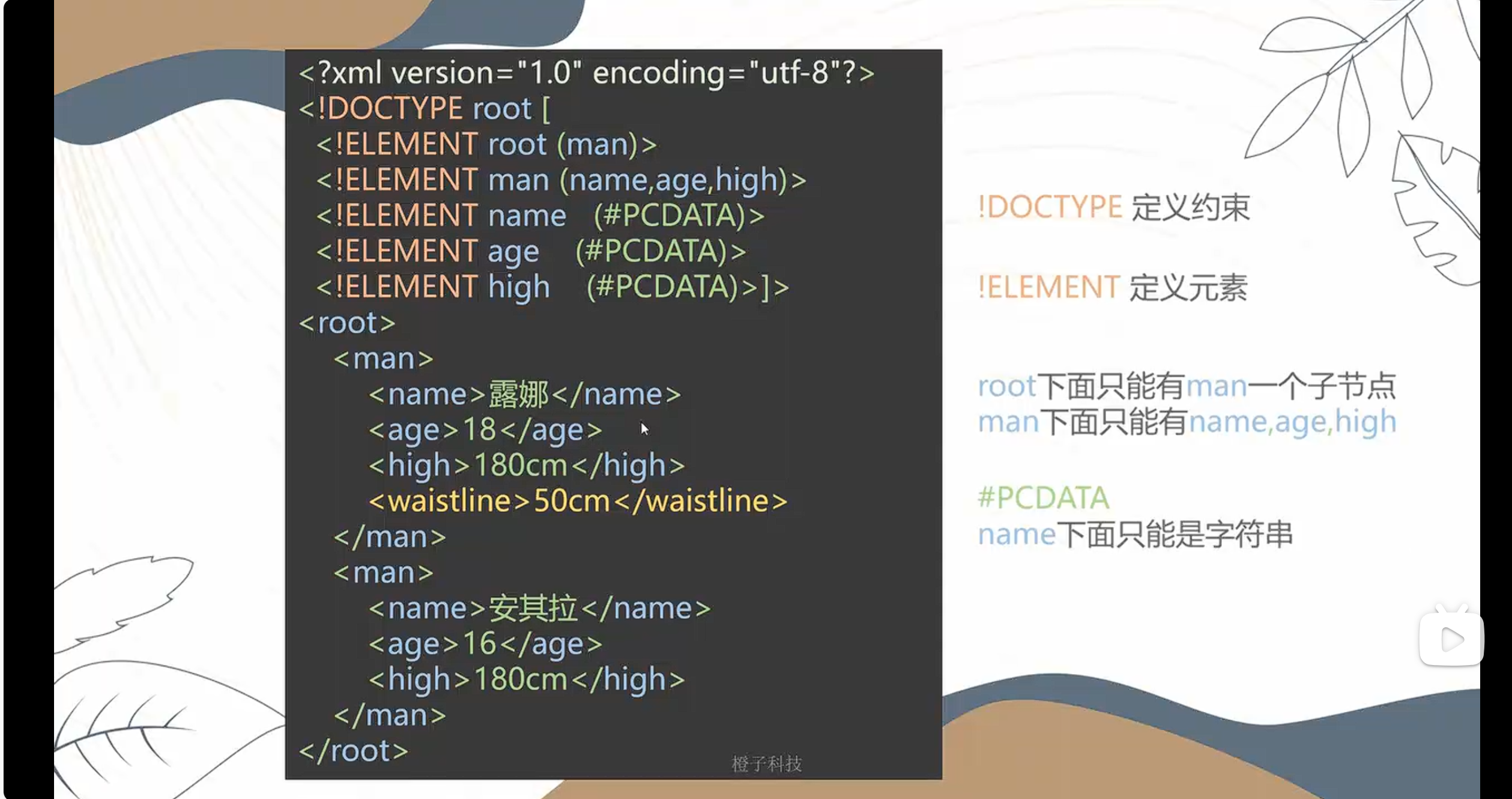在 XML 中可以自定义标记,DTD 用来定义我们自己定义的