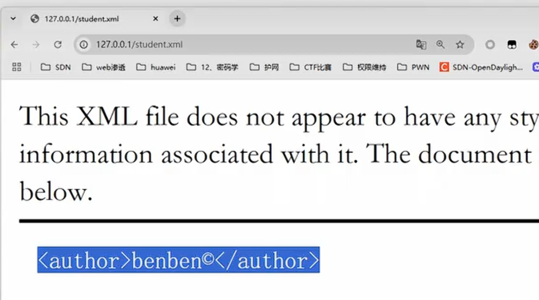 这是一点,第二点是下面的 name,你得通过代码审计判断出这是要求你的 xml 数据一定要有 name 这个标签,而且通过后续的提交发现回显位也是 name