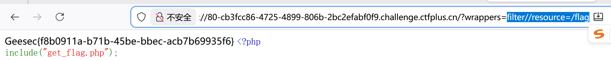 1 | filter/read=convert.base64-encode/resource=flag.php |