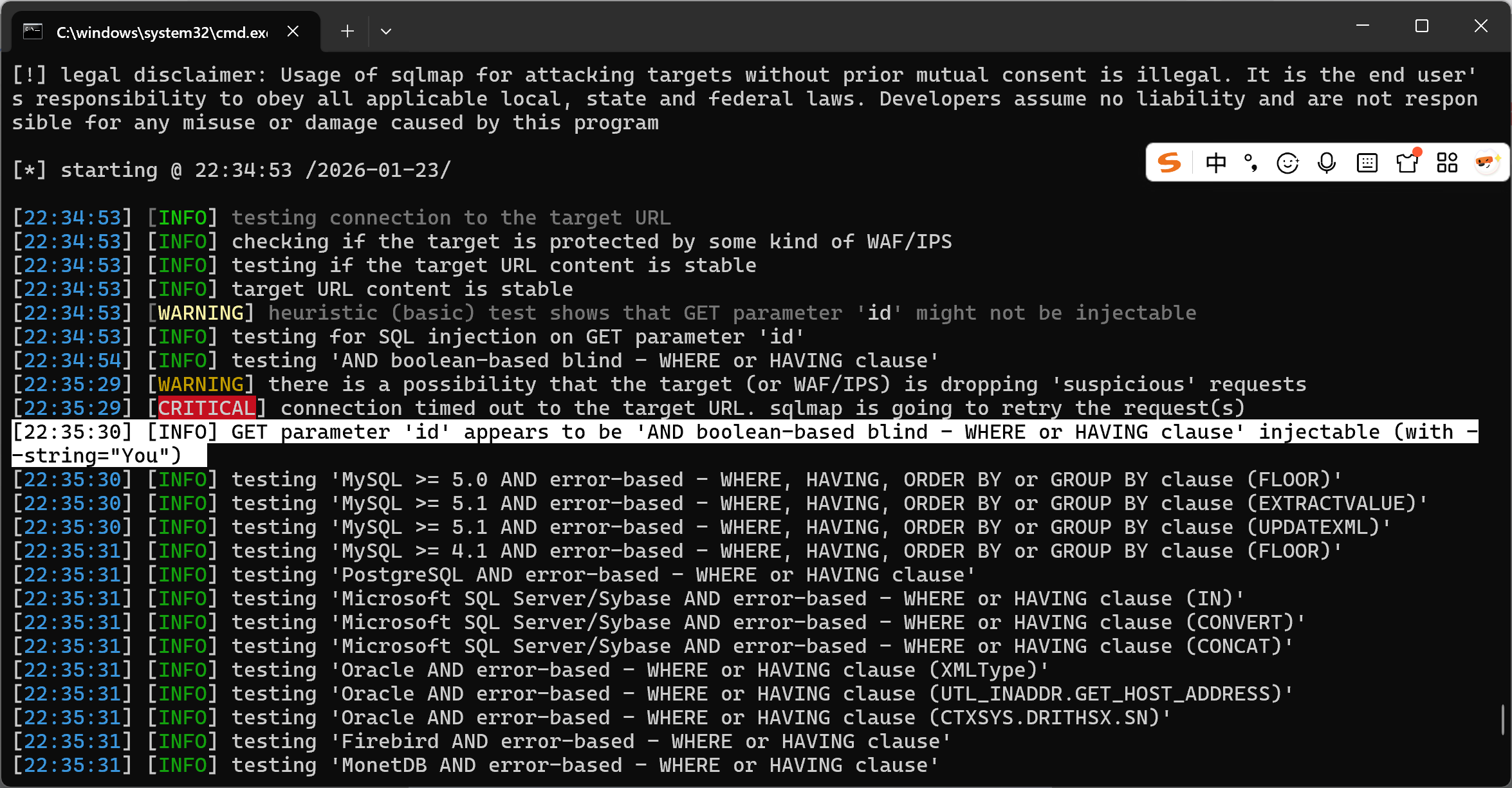 sqlmap 可用于检测利用五种不同类型的 SQL 注入。