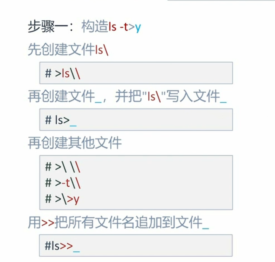 执行 a,就能将 ls -t 的内容写入新文件 y,观察 y 后证明命令正确