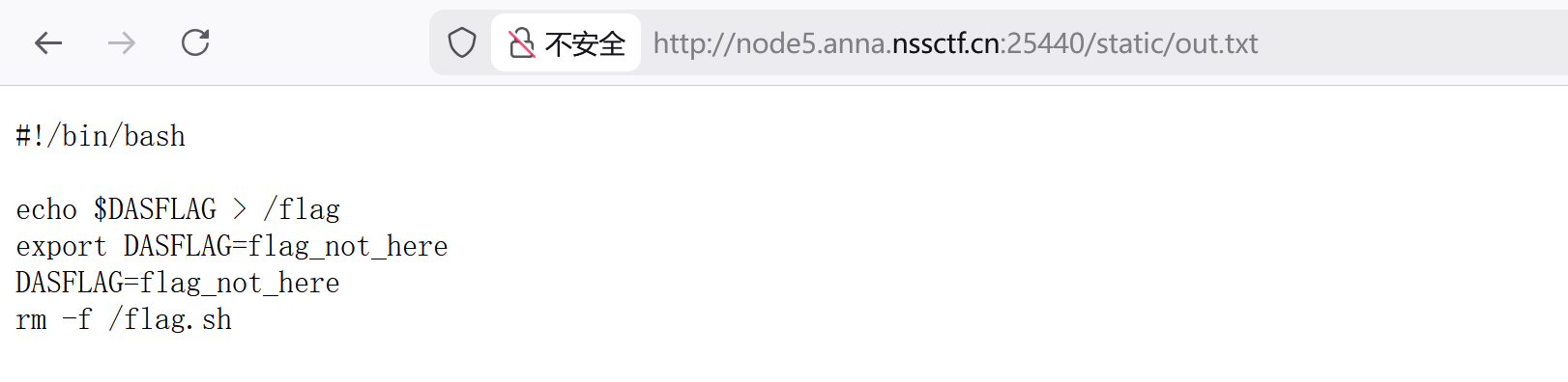按照源码的逻辑,我们的危险代码就成功被 pickle 反序列化了,此时访问/static/out.txt,就得到我们的最终答案了